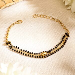 18K Gold-Plated Black Beaded & Golden Chain Mangalsutra Bracelet for Women