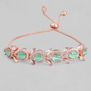 Set of 2 18K Gold-Plated Mint Green & White Cubic Zirconia Studded Floral Bangles – 2.8
