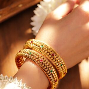 Pack Of 2 22K Gold-Plated Emerald Stone Studded Traditional Bangles – 02-Aug
