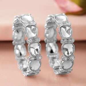 Set of 2, Rhodium-Plated Cubic Zirconia Studded Premium Handcrafted Bangles – 02-Jun