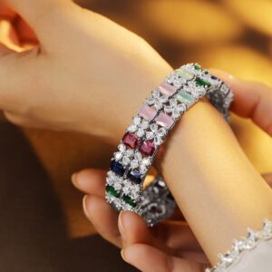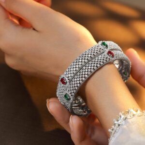 Set of 2 Rhodium-Plated Ruby Emerald and Cubic Zirconia Studded Premium Bangles – 2.6