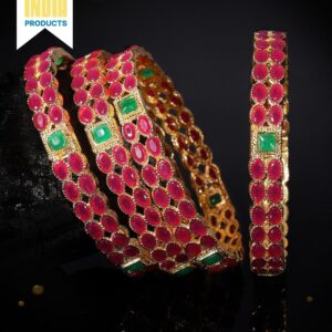 Set of 2 22K Gold Plated Ruby Pink & Emerald Green Stone Studded Bangles – Gold / 2.4