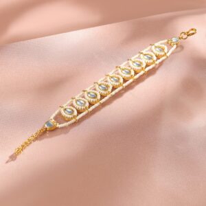 Set of 2, 22K Gold Plated Kundan & CZ Studded & Pearl Beaded Handcrafted Bangles – 2.6