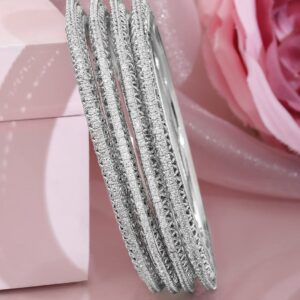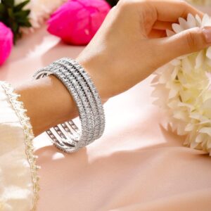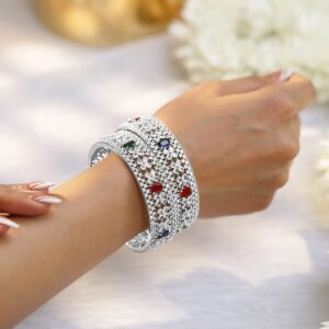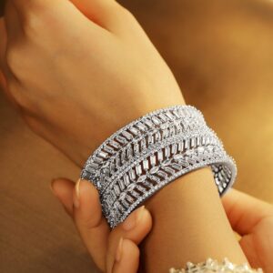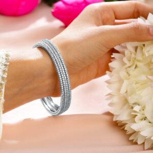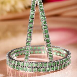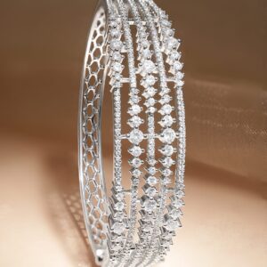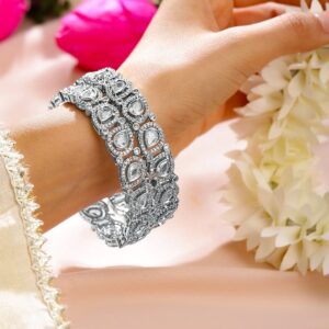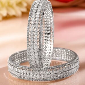 Set of 2 Rhodium-Plated Cubic Zirconia Studded Premium Handcrafted Bangles – 02-Apr
