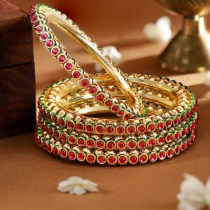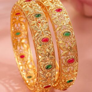 Set of 2, 22K Gold-Plated Ruby Pink & Emerald Green Stone Studded Handcrafted Bangles – 02-Apr