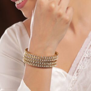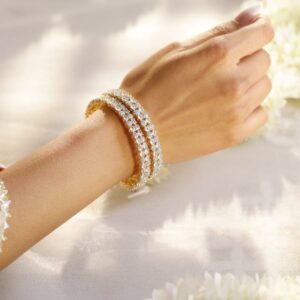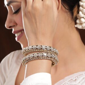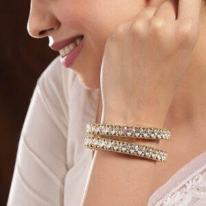 Set of 2, 22K Gold-Plated White Cubic Zirconia Studded Handcrafted Bangles – 2.8