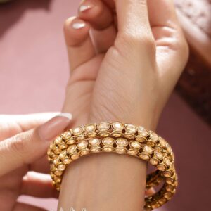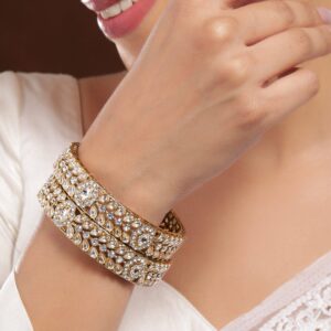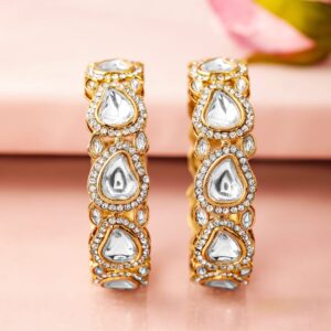 Set of 2 18K Gold-Plated Kundan & AD Studded Handcrafted Premium Bangles for Women – 2.4