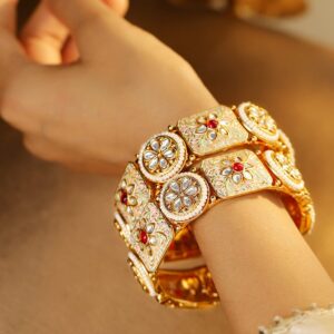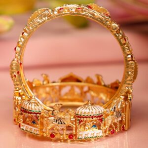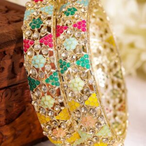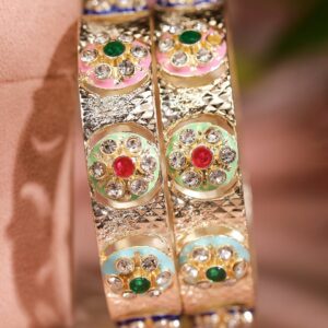 Set of 2 22K Gold Plated Handcrafted Bridal Bangles with Multicolor Enamel & Stones – 02-Jun