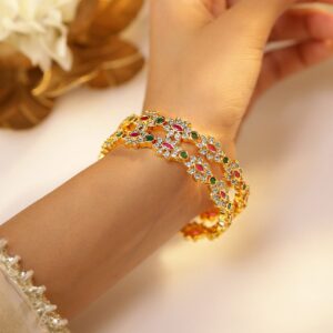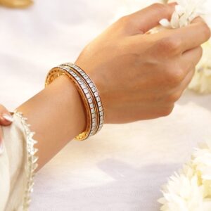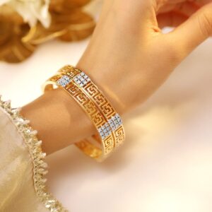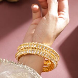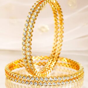 Set of 2, 22K Gold-Plated Cubic Zirconia Studded Premium Bangles – 02-Apr