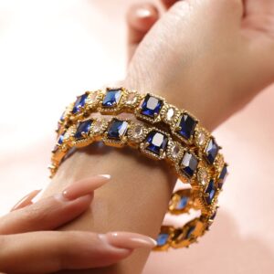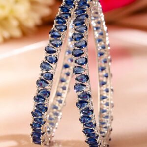 Set of 2 Rhodium-Plated Blue Sapphire Studded Handcrafted Premium Bangles – 02-Apr