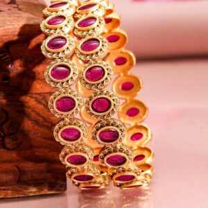 Set of 2, 22K Gold-Plated Ruby Pink Stone Studded Traditional Bangles – 2.6
