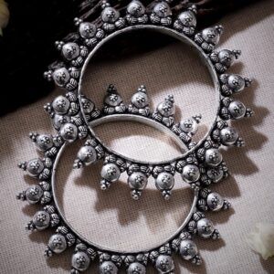 Set Of 2 Silver-Plated Oxidized Artisan-Crafted Bangles with Ghungroo Beads – 2.8
