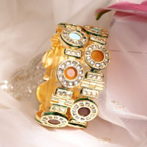 Set Of 2 22K Gold-Plated Multicolor Gemstone & Cubic Zirconia-Studded Bangles – 02-Jun