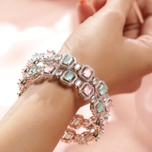 Rhodium-Plated Multicolor Cubic Zirconia Studded Premium Bangles – 2.8