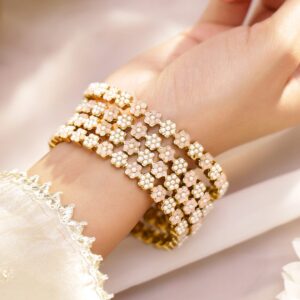 Set of 2 18K Gold-Plated Multicolor Enamel & Stone-Studded Floral Design Bangles – 02-Apr