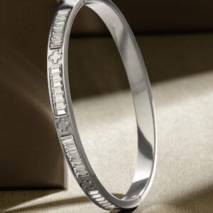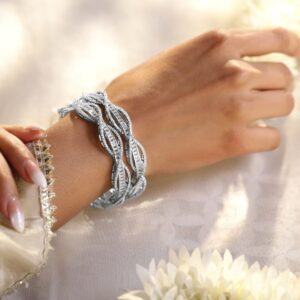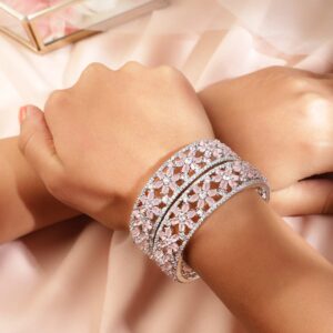 Set of 4 Rhodium-Plated White Cubic Zirconia Floral Design Handcrafted Premium Bangles for Women – 02-Jun