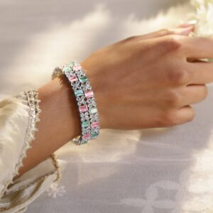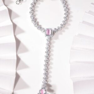 Rhodium Plated Zirconia Studded Fashionable Hath Phool – Silver::Pink
