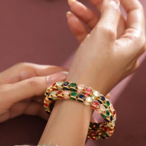 Set of 2, 22K Gold-Plated Multicolor AD & CubicZirconia Studded Traditional Bangles – 2.8