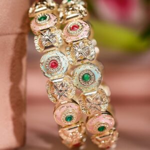 Set of 2 18K Gold-Plated Multicolor Enamel & Stone-Studded Floral Design Bangles – 02-Apr