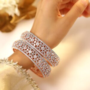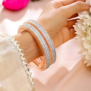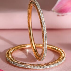 Set of 2 22K Rose Gold-Plated Cubic Zirconia Studded Handcrafted Premium Bangles – 02-Aug