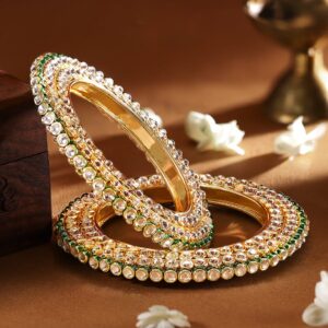 Set of 2 18K Mehandi Gold-Plated Kundan & Cubic Zicronia Stone Bangles – 2.8
