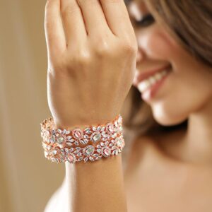 Rose Gold Plated Zirconia Stone Studded Set of 2 Bangles. – 2.4