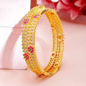 2 Pieces 22KT Gold-Plated CZ Stone Studded Bangles – 02-Jun