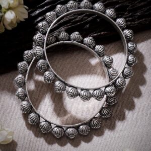 Set of 2 Handcrafted Oxidized Silver-Plated Bangles – 2.6