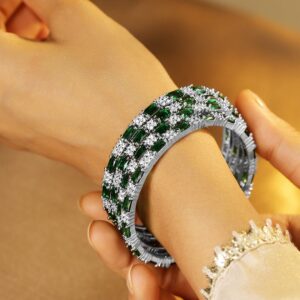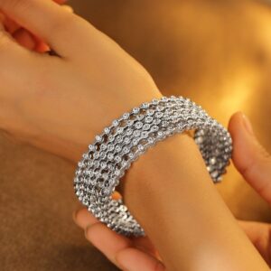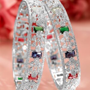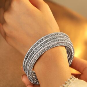 Set of 4 Rhodium-Plated Cubic Zirconia Stone Studded Luxurious Bangles – 2.8