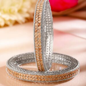 Set Of 6 Rhodium-Plated Cubic Zirconia Studded Classics Bangles in Silver Tone for Women – 02-Apr