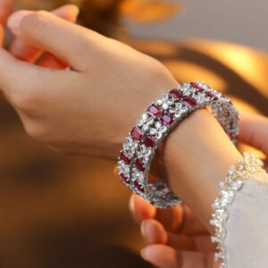 Set of 2 18K Gold-Plated Ruby Red & White Zirconia Studded Floral Design Bangles – 2.6