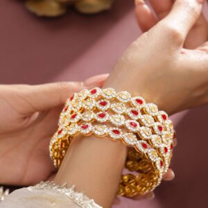 Set Of 4 22 K Gold Plated Ruby, Emerald & CZ-Studded Bangles – 2.6