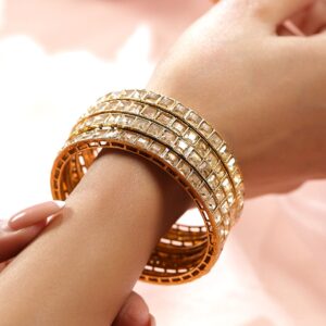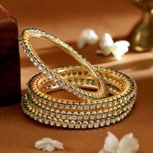 Set of 4, 18K Gold-Plated AD & Mirror Studded Elegant Hancrafted Bangles for Women – 02-Aug