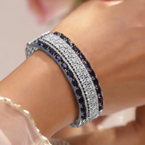 Rhodium-Plated Luxe Statement Bracelet with Blue Sapphire Stones & Cubic Zirconia Detailing
