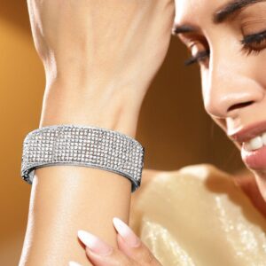 Rhodium-Plated White Cubic Zirconia Studded Openable Bracelet with Classic Design – Silver
