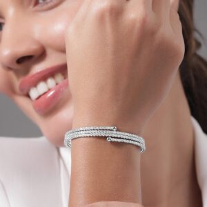 Set of 2 Rhodium-Plated Crystal White Cubic Zirconia Studded Premium Bangles – 2.8