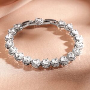 Rhodium-Plated AAA Cubic Zirconia Studded Heart Tennis Bracelet Elegant & Timeless Design – SIlver