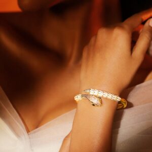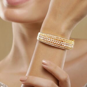 Dual Tone 22K Gold & Silver Plated Sparkling Zirconia Studded Openable Bangle-Style Bracelet – Gold