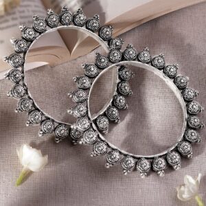 Set of 2 Oxidized Silver plated Bangles with Lotus Motif – 2.4