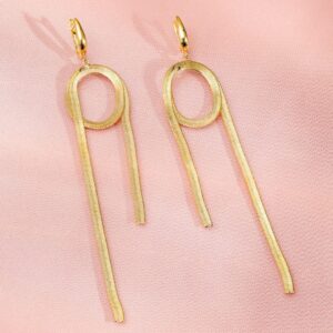 Earrings : Make a statement with these 18K gold-plated shoulder duster earrings, featuring a modern open-loop design with cascading chain detailing. The bold and sleek aesthetic adds glamour to any outfit. Occasion : Bring your style to a whole new level with this handcrafted piece of jewellery. When you’re celebrating a special Occasion : – a birthday, wedding, or personal milestone – this piece adds that extra something that makes us feel special and looking our best. Material : & Care Dimension : Length : 7 cm, Width: 3 cm Net Weight: 32 g Net Quantity : 1 Pair Of Earrings Material :Brass Care Label : It is advisable to avoid contact with water and organic chemicals i.e. perfume sprays. Store jewellery in airtight box. After use, wipe the jewellery with soft cotton cloth.