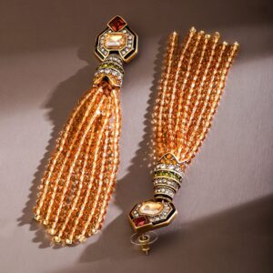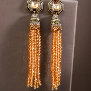 Be the first to review “18K Gold Plated Citrine Yellow Beaded Tassel & Cubic Zirconia Long Dangle Earrings – Orange”