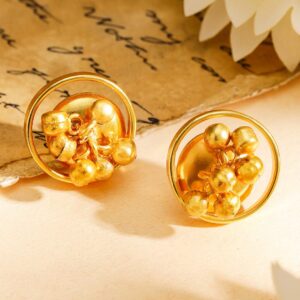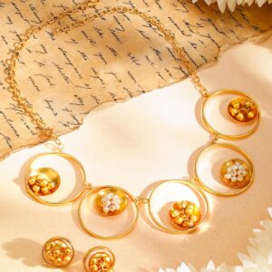 Jewellery Set : Add a modern charm to your collection with this 18K gold-plated necklace and earrings set, featuring circular motifs adorned with golden and white pearl beads. Perfect for versatile styling. Occasion : Bring your style to a whole new level with this handcrafted piece of jewellery. When you’re celebrating a special Occasion : – a birthday, wedding, or personal milestone – this piece adds that extra something that makes us feel special and looking our best. Material : & Care Dimension : Length : 24 cm / 3.5 cm, Width: 1.9 cm / 1.9 cm Net Weight: 43.25 g Net Quantity : 1 Necklace & 2 Earrings Material :Brass Care Label : It is advisable to avoid contact with water and organic chemicals i.e. perfume sprays. Store jewellery in airtight box. After use, wipe the jewellery with soft cotton cloth.