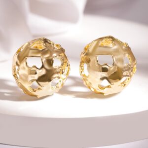 These 18K gold plated round stud earrings feature an openwork design with a modern artistic touch, making them the perfect blend of contemporary style and timeless elegance. Material & Care Dimension : Length : 2.2 cm ; Width : 2.2 cm Material : Brass Care Label : It is advisable to avoid contact with water and organic chemicals i.e. perfume sprays. Store jewellery in airtight box. After use, wipe the jewellery with soft cotton cloth.