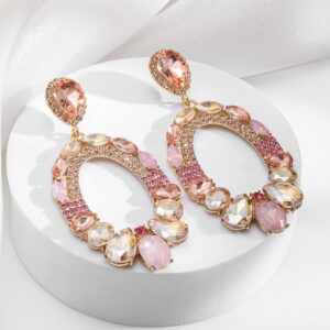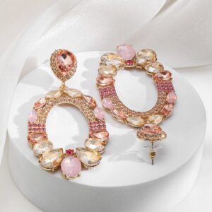Be the first to review “18K Gold-Plated Oval Pink & Champagne Crystal Studded Statement Dangle Earrings”