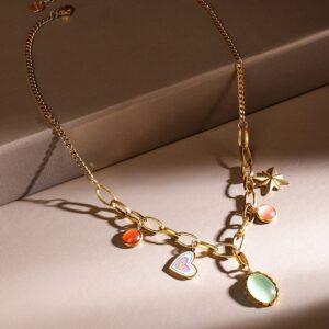 18K Gold-Plated Stainless Steel Tarnish-Free Waterproof Multicolor Charm Necklace – Multicolor