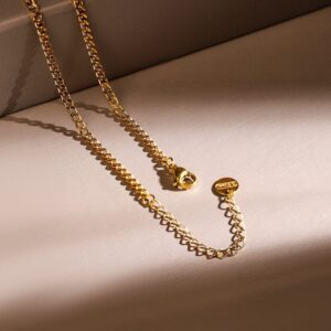 Necklace and Chains : A dazzling pair of 18K gold-plated hoop earrings with cubic zirconia-studded ball drops, adding a glamorous statement to any look. Occasion : Bring your style to a whole new level with this handcrafted piece of jewellery. When you’re celebrating a special Occasion : – a birthday, wedding, or personal milestone – this piece adds that extra something that makes us feel special and looking our best. Material : & Care Dimension : Length : 22 cm, Width : 1.3 cm Net Weight: 16.95 g Net Quantity : 1 Necklace Material :Stainless Steel Care Label : It is advisable to avoid contact with water and organic chemicals i.e. perfume sprays. Store jewellery in airtight box. After use, wipe the jewellery with soft cotton cloth.