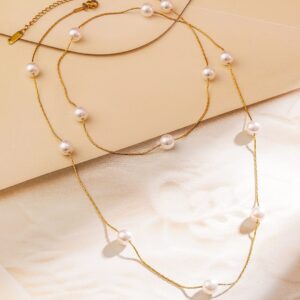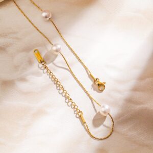 Chain & Necklace : This elegant long necklace features 18K gold plating on stainless steel, adorned with lustrous pearl beads and gold bead details, offering a tarnish-free and waterproof finish for lasting beauty. Occasion : Bring your style to a whole new level with this handcrafted piece of jewellery. When you’re celebrating a special Occasion : – a birthday, wedding, or personal milestone – this piece adds that extra something that makes us feel special and looking our best. Material : & Care Dimension : Size : Length : 40 cm, Width : 0.7 cm Net Weight: 6.58 g Net Quantity : 1 Chain & Necklace Material :Stainless Steel Care Label : It is advisable to avoid contact with water and organic chemicals i.e. perfume sprays. Store jewellery in airtight box. After use, wipe the jewellery with soft cotton cloth.