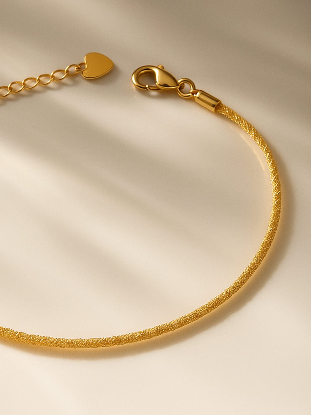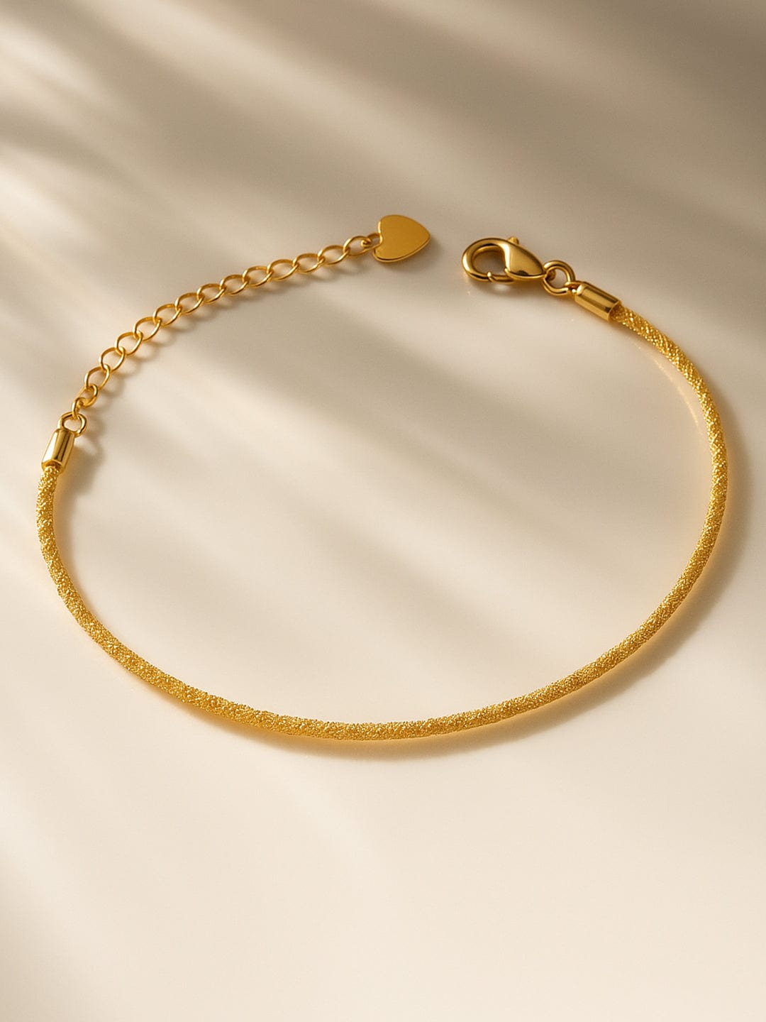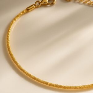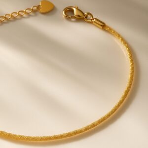 Anklet : 18K gold-plated stainless steel anklet with sleek textured chain design, tarnish-free & waterproof, lightweight & adjustable for a perfect fit – ideal for daily, festive, and party wear. Versatile Style for All Occasions: Lightweight and timeless, perfect for everyday wear, festive celebrations, parties, and as a thoughtful gift for women & girls. Material : & Care Dimension : Size : Length : 19.5 cm, Width : 1 cm Net Weight : 3.2 Gram Material : Stainless Steel Net Quantity : 1 Anklets Care Label : It is advisable to avoid contact with water and organic chemicals i.e. perfume sprays. Store jewellery in airtight box. After use, wipe the jewellery with soft cotton cloth.