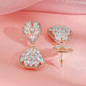 Earrings : These 18K Gold-Plated Teardrop Crystal Dangle Earrings feature elegant teardrop-shaped crystals, suspended from a sleek 18K Gold-Plated setting. Their timeless design adds a sophisticated touch, perfect for any formal or special occasion. Occasion : Bring your style to a whole new level with this handcrafted piece of jewellery. When you’re celebrating a special Occasion : – a birthday, wedding, or personal milestone – this piece adds that extra something that makes us feel special and looking our best. Material : & Care Dimension : Length : 5.8 cm, Width: 2.1 cm Net Weight: 14.90g Net Quantity : 1 Pair Of Earrings Material :brass Care Label : It is advisable to avoid contact with water and organic chemicals i.e. perfume sprays. Store jewellery in airtight box. After use, wipe the jewellery with soft cotton cloth.