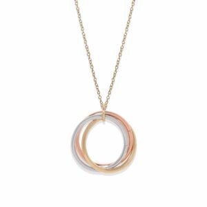Be the first to review “18K Gold-Plated Triple Tone Circular Pendant Necklace in Gold, Silver & Copper Tone – Gold”